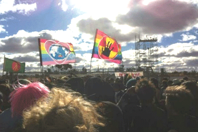 An estimated 400 people marched to the gates of the Olympic Dam uranium mine today, marking the first day of the Lizards Revenge music and arts festival of resistance.