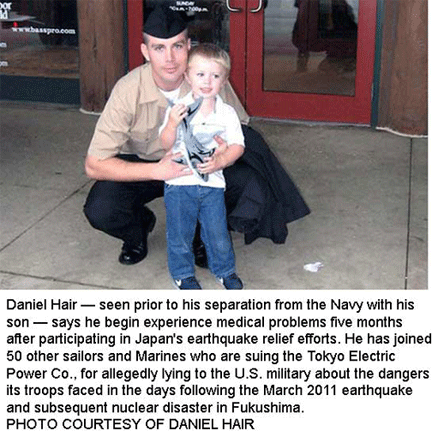 Hair believes radiation is the cause. He is among 50 sailors and Marines in a growing lawsuit against Tokyo Electric Power Co.,