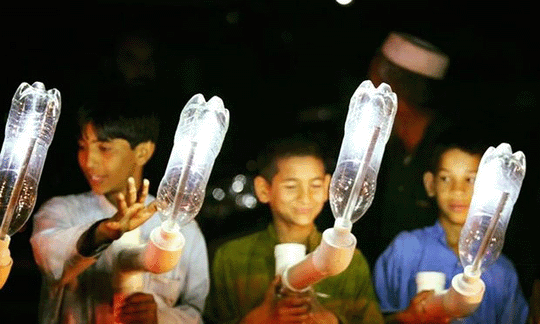 This changed in April 2015 when Liter of Light, a project that transforms plastic bottles into simple solar lights, introduced solar-powered street lamps to the villages. “Some of the children had never seen [artificial] light in their lives,” says Pankaj Dixit, co-founder of Liter of Light’s Bangalore branch in India. “They said we had added four hours to their lives every day.”
