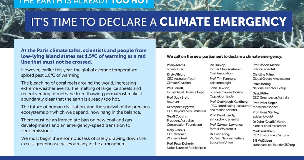 Climate emergenecy statement published in “The Age” 23 June 2016.