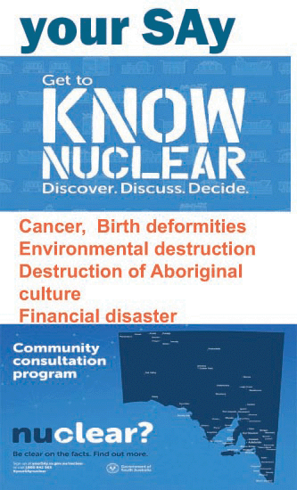 They were too busy at the Royal Show, handing out pretty “Nuclear” balloons to little children. True! I’ve had several reports from unhappy grandparents and parents, who thought it was an outrageous piece of propaganda on the government’s behalf. Every day, it seems that more people are being made aware, and they are not happy about this proposal. http://yoursay.sa.gov.au/discussions/nuclear-community-conversation-community-discussion-consent