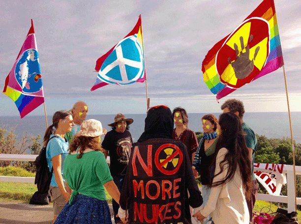Anti-nuclear activists gathered at Cape Byron Lighthouse today morning to mark the sixth anniversary of the tsunami that crippled the nuclear power reactors in Fukushima and to send a message of solidarity to the people of Japan.