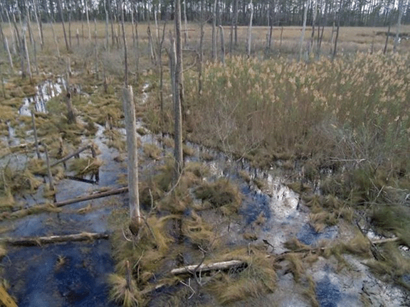 “I think ghost forests are the most obvious indicator of climate change anywhere on the Eastern coast of the U.S.,” said Matthew Kirwan, a professor at Virginia Institute of Marine Science who is studying ghost forests in his state and Maryland. “It was dry, usable land 50 years ago; now it’s marshes with dead stumps and dead trees.”