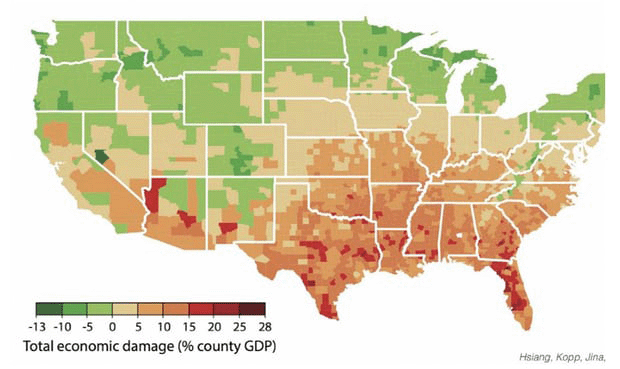 Fortunately, a really important paper just came out in Science titled Estimating Economic Damage from Climate Change in the United States. Granted, this paper focused on the United States, but the analysis method and lessons can be applied elsewhere.