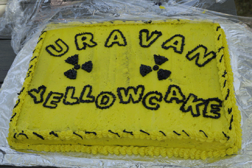But, she wants to keep having these annual reunion picnics, where the real star of the show is the desert: an actual yellow cake, with yellow frosting and black radioactive signs on top.