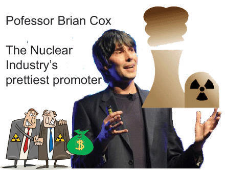 Brian Cox is a very personable and knowledgeable TV star and particle physics expert. He is also a promoter of the nuclear industry. He is a big fan of plutonium -powered space travel.