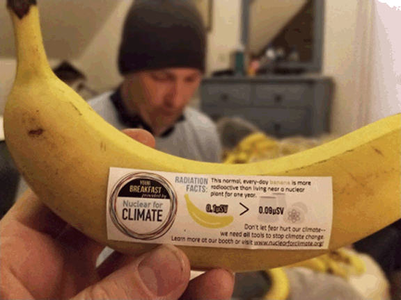 So – the nuclear lobby at the climate talks was reduced to pushing one of their most dishonest and silliest propaganda spins – the “banana argument”. Because our bodies contain a small amount of (mildly) radioactive Potassium 40 – and because there’s potassium 40 in bananas – then we are told not to worry about the nuclear fission produced highly radioactive ions like Cesium , Strontium, Iodine,