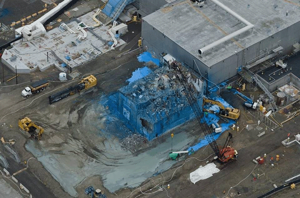 Demolition was stopped at the plant in mid December, after specks of radioactive contamination were discovered to have spread outside of a containment zone established around demolition work.