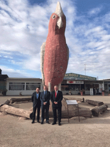 Here’s a photo of me and my Senate colleagues, Chris Ketter (QLD) and Dean Smith (WA) standing in front of The Big Galah in Kimba. No jokes about politicians and galahs please.
