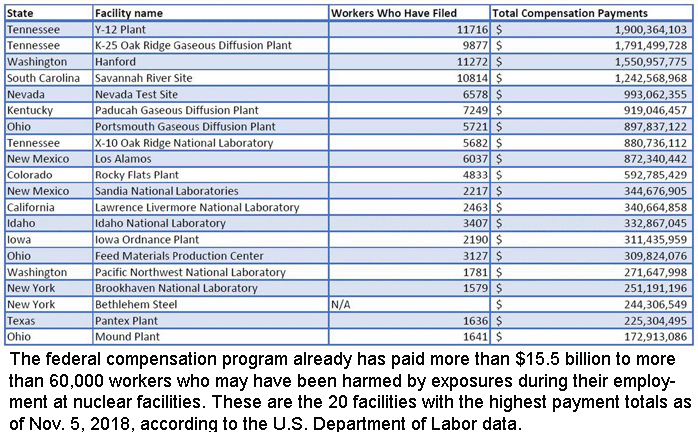Workers exposed to nuclear radiation: $15.5 billion in compensation and counting