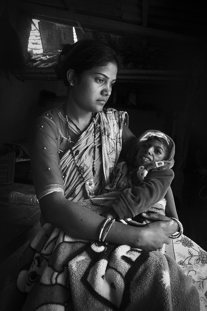 Child with cerebral palsy, in uraniummining region Dungridih village. Jaduguda, photo by Subhrajit Sen.