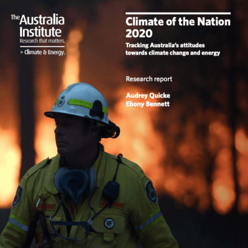 Climate of the nation 2020, Tracking Australia’s attitudes towards climate change and energy 28 OCT 2020 https://apo.org.au/node/309142, Audrey Quicke, Ebony Bennett, PUBLISHER The Australia Institute