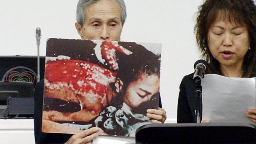 Abe says she was once nicknamed “Red Ogre” because of her scars. “My wound did not heal. My body weakened. I was in poverty. Many people stared at me only just to satisfy their curiosity, because they wanted to know what a hibakusha looked like. They did not feel sympathy for me. They bullied me. The suffering that I went through, and the emotional wound, will never go away.”