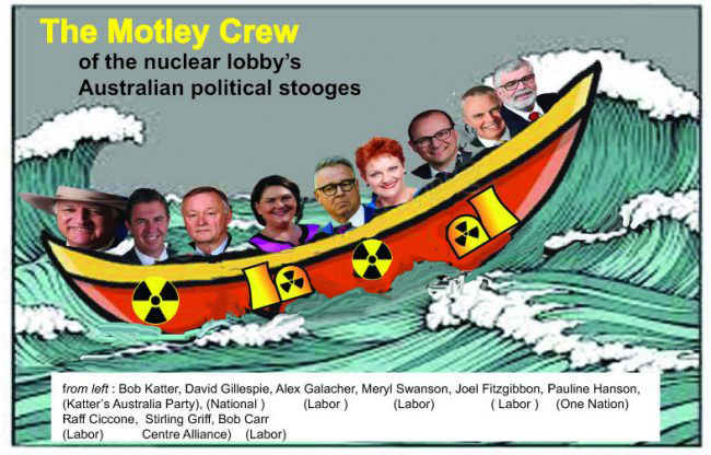 Meanwhile, the 9 mentioned have an odd assortment of views on energy – some support renewable energy, some oppose. There’s some scepticism on climate change, where you’d expect nuclear being touted as the solution. And Pauline Hanson is on record as opposing the nuclear lobby’s plan for a nuclear waste dump at Kimba, South Australia.