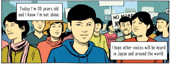 Nevertheless, the book ends on a hopeful note. “Today,” concludes Suguru on the closing page, “I know I’m not alone. I hope other voices will be heard in Japan and around the world.”