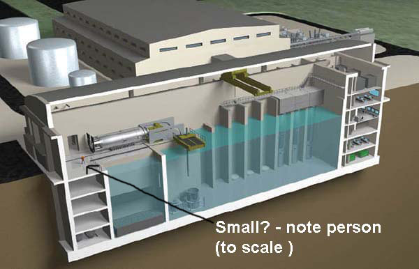 It is understood the co-operation will involve “leveraging” the expertise of the Australian Nuclear Science and Technology Organisation in waste processing and advanced materials to help advance development of small modular reactors, which are about the size of a standard shipping container. ( small? deceptive spin – see below for an example)