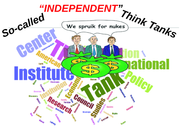 “Think tank” is a good and accurate label, not because a great deal of thought happens in them, but because they’re dedicated to controlling what people think, and because they are artificial enclosures for slimy creatures. Their job, generally speaking, is to concoct and market reasons why it would be good and smart to do something evil and stupid.