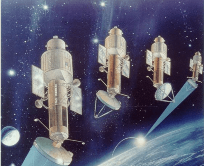 Dornberger’s nuclear link continues in various forms throughout the U.S. military space program. The Strategic Defense Initiative scheme of Reagan—although this was barely disclosed at the time—was predicated on orbiting battle platforms with on-board hypervelocity guns, particle beams and laser weapons. They were to be energized by on-board nuclear reactors.