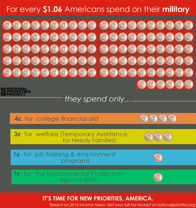 Let’s open the books, declassify the secrets and lies, let our vets talk about PTSD and moral injury, let refugees talk about loved ones found in the rubble, let the corporate militarists disclose their finances, and demand full coverage by the media.