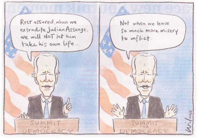 The High Court ruling ironically came as Secretary of State Antony Blinken announced at the virtual Summit for Democracy that the Biden administration will provide new funding to protect reporters targeted because of their work and support independent international journalism. Blinken’s “assurances” that the Biden administration will defend a free press, at the very moment the administration was demanding Assange’s extradition, is a glaring example of the rank hypocrisy and mendacity that makes the Democrats, as Glen Ford used to say, “not the lesser evil, but the more effective evil.”