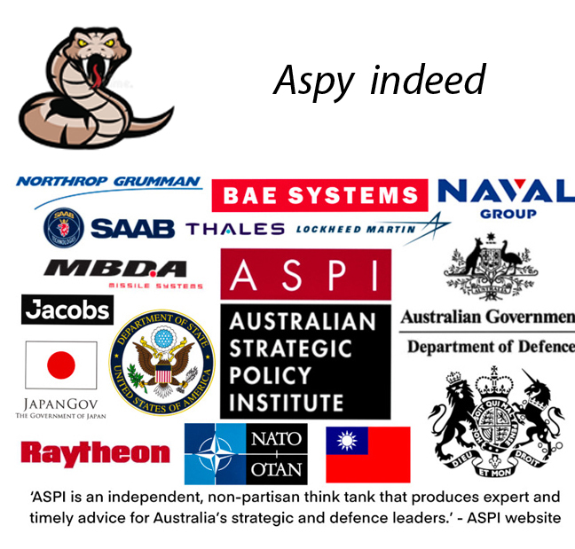 Australian Security Policy Institute – funded by weapons corporations, and federal govt – drumming up the frenzy for war with China