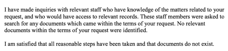 FOI Response from Houston Ash, Senior Adviser to the Attorney-General