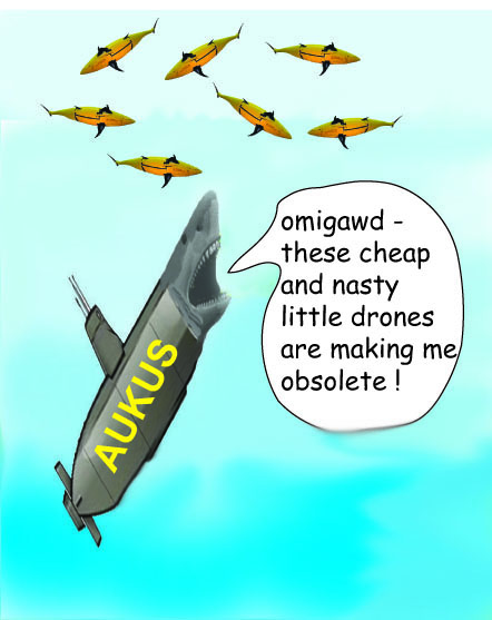 Here’s a story from 2020 on underwater drones, specifically contrasting them with the Virginia class submarines central to AUKUS. The RAN already has its own drones on order and is confident of their ability to make life very difficult for hostile submarines. This material isn’t hard to find – it was old news when I tweeted about it last year.