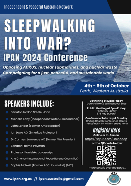 Perth October 4th – 6th, 2024 https://ipan.org.au/event/ipan-conference-2024-sleepwalking-into-war/
