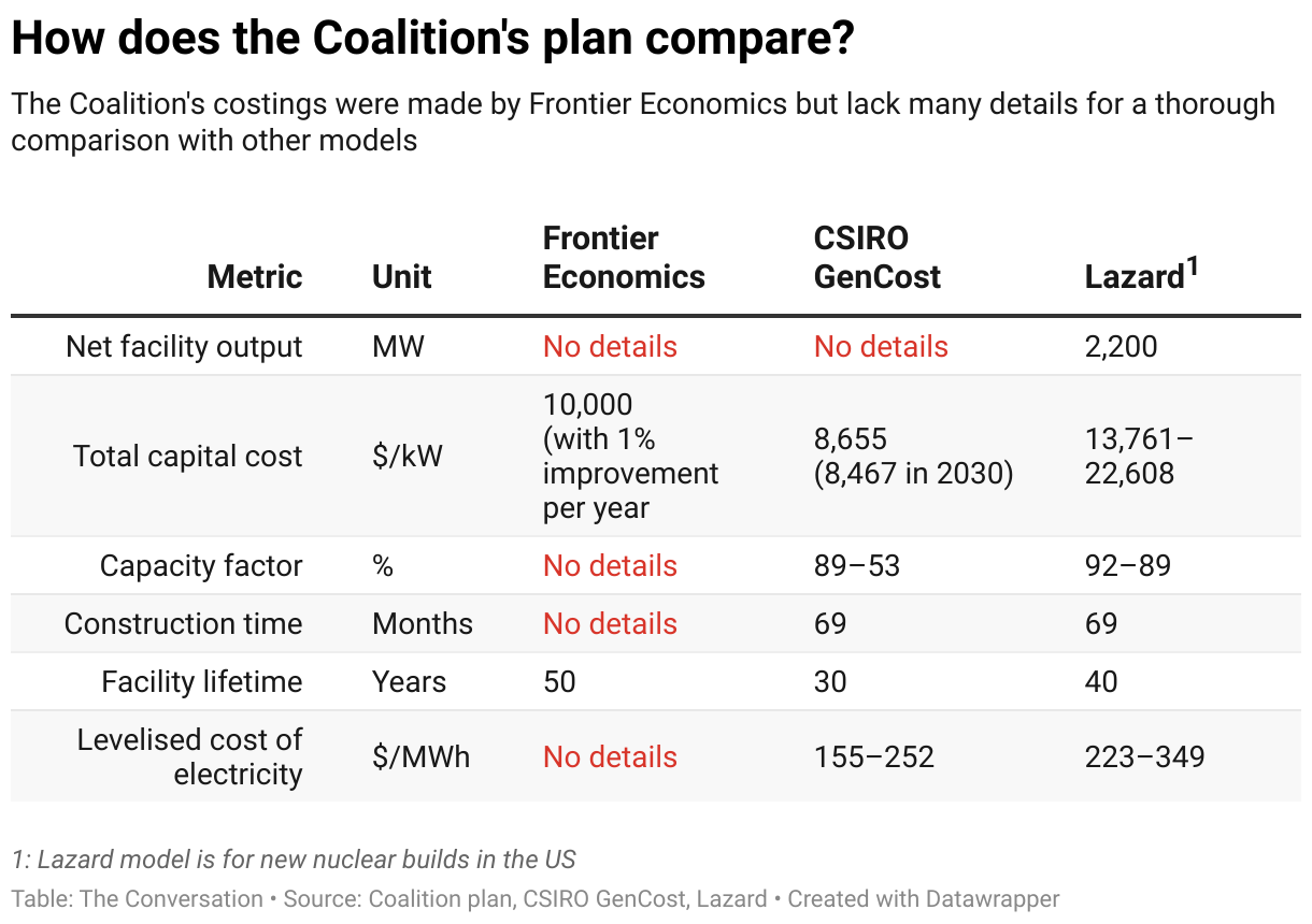 The cost of the Coalition’s proposal is a key point in the debate. According to CSIRO analysis, “nuclear power does not currently provide the most cost-competitive solution for low-emission electricity in Australia”. This position is at odds with the Coalition’s claims.