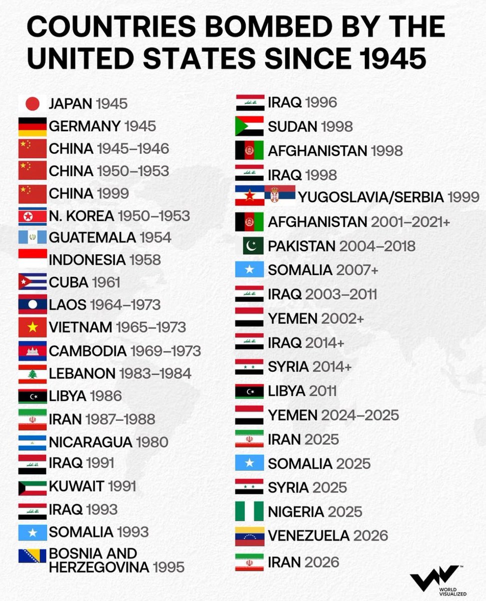 The record speaks for itself. The US is the biggest invader of other countries in history. Israel has, last year alone, attacked Iran, Iraq, Lebanon, Yemen, Jordan, Palestine, Qatar, Tunisia, Malta, and Greece.