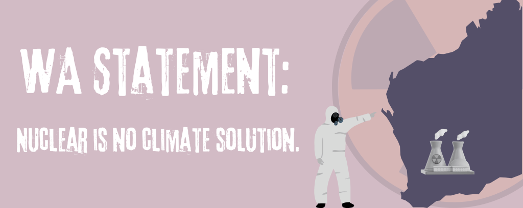 | SIGN THE STATEMENT Please take action to protect WA from the threat of nuclear power by signing the statement “Nuclear is No Climate Solution.” Please help grow the support to stop Dutton’s nuclear power push in the West. |