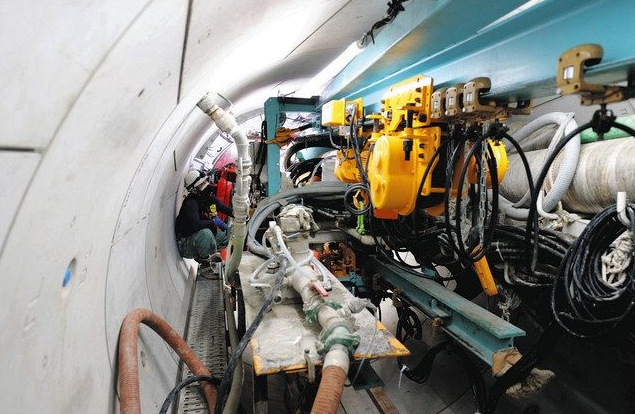 A shield machine with many pipes and cables has been used to dig about 80 meters since Aug. 4.