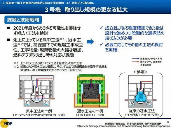 Yamana said the NDF will study the feasibility of the work being proposed and consider the alternative option of retrieving fuel debris from the top or the side of the containment vessel without filling the vessel with water.