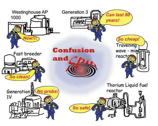 As the absence of progress on small modular reactors has shown, there is simply no viable market for new reactors, “advanced” or otherwise. Even the enticing prospect of rolling hundreds of small reactors off assembly lines (a jobs killer for on-site workers), is pie-in-the-sky, given the huge upfront costs that could never be recouped unless there were hundreds, possibly thousands, of orders.