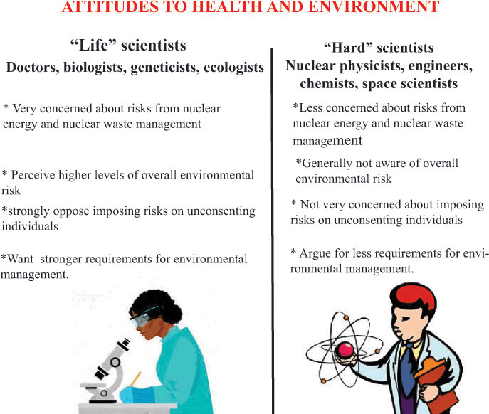 Research has found disturbing differences in the attitudes of scientists in different areas, to health and environmental risks of the nuclear industry.