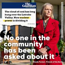 Wendy Farmer, who has formed an alliance of the seven regions affected by the Coalition’s pledge to build nuclear reactors on the site of coal-fired power stations, says Australians should be “very angry” that they will not be able to veto any planned nuclear generators in their towns despite the Coalition’s promise to carry out a two-and-a-half-year consultation.