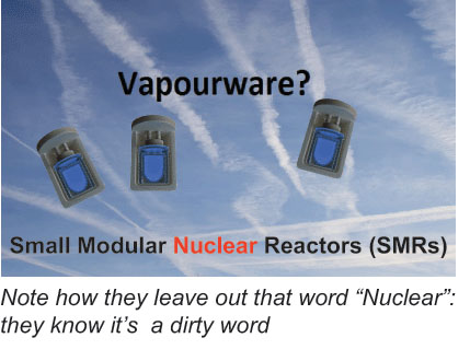 In the meantime, it’s worth being wary about the financial aspects, given the obscure manipulations going on in the US and UK, and remembering that not yet does one of these mythical beasts, Small Modular Nuclear Reactors actually exist.