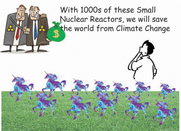 It’s all nonsense. The safety claims don’t stack up. Nor do the claims about waste. Academic M.V. Ramana notes that “a smaller reactor, at least the water-cooled reactors that are most likely to be built earliest, will produce more, not less, nuclear waste per unit of electricity they generate because of lower efficiencies.”