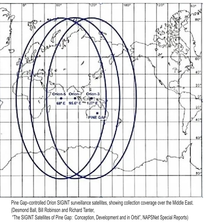 Two large Orion geosynchronous signals intelligence satellites, belonging to the U.S. and operated from Pine Gap, are located 36,000 kms above the equator over the Indian Ocean. Frosxxxdxxxxxm there, they look down on the Middle East, Europe and Africa, and gather huge amounts of intelligence data to beam back to the Pine Gap base.xxxxxc
